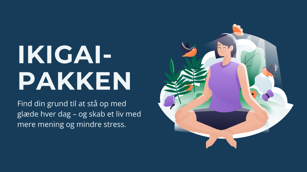 Jeg har selv været glad for at bruge ikigai som pejlemærke i mit eget liv. Derfor har jeg lavet en ikigai-pakke, hvor du får en e-bog om ikigai, 20 dagbogsprompts, podcast, videooversigt og et par små overraskelser, der konkret hjælper dig med at praktisere ikigai i dit eget liv.